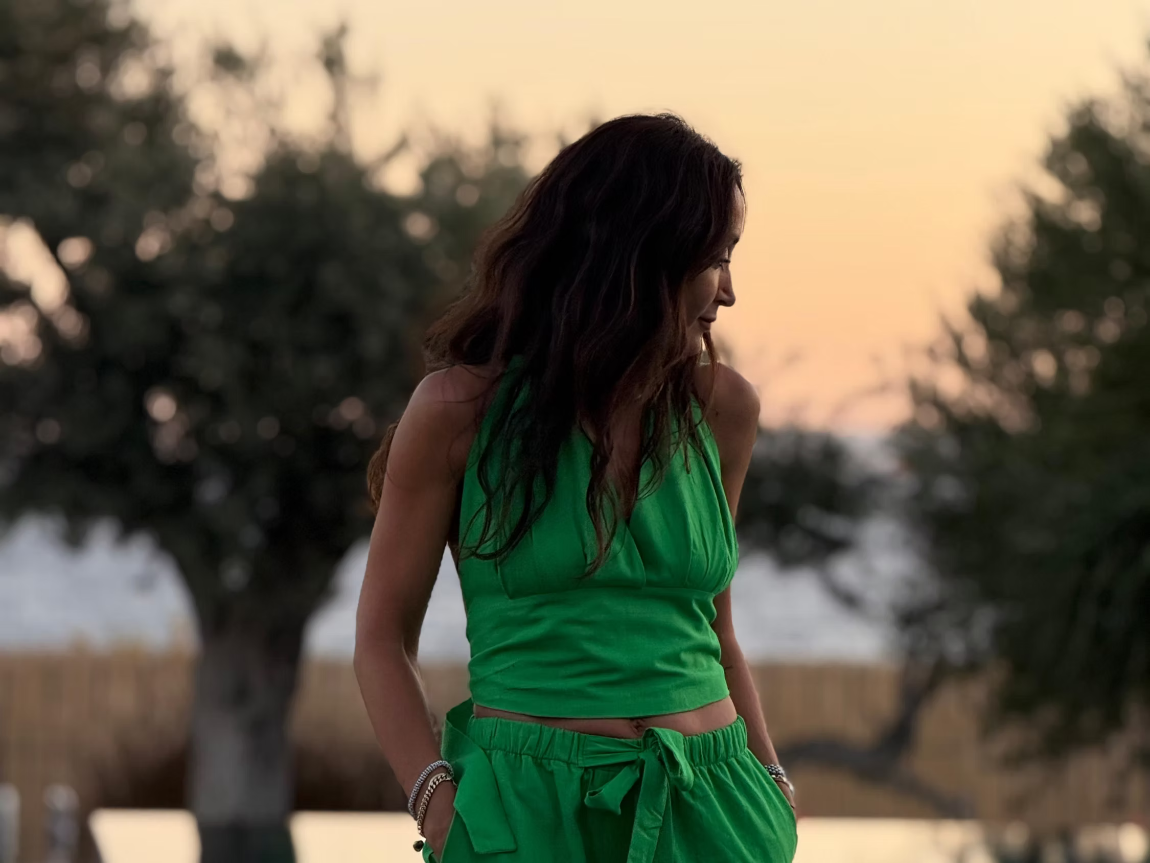AICHA 100% Cotton Ecru Front Tie Front Bustier and Pants with Slits